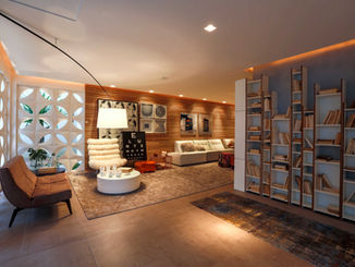 Para a Casa Cor São Paulo 2014, no histórico Jockey Club, projetei o Lounge Galeria — um espaço de 140 m² totalmente integrado, que une living, cozinha e galeria de arte. O tema da edição foi ‘100 % Morar Bem’, valorizando a arte de viver com conforto e estilo. Minha inspiração veio da princesa e DJ Paola de Orleans e Bragança, símbolo de elegância com espontaneidade. Utilizei materiais naturais e reciclados — madeira, cobre e cimento queimado — com foco em sustentabilidade. A luz natural flui pelos cobogós e portas de vidro, criando uma atmosfera acolhedora e cheia de vida.